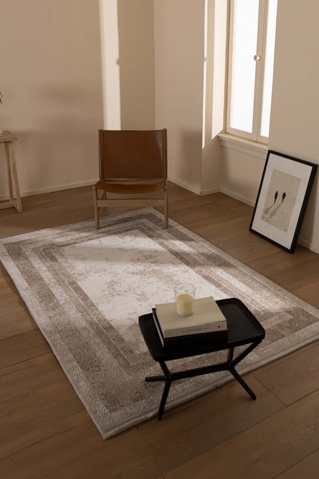 Μοναδικό χαλί μηχανής με χαρακτηριστικά σχέδια χειροποίητων χαλιών. Το ιδιαίτερο τελείωμα του χωρίς ρέλι, καθώς και η κατασκευή από ποιοτικά νήματα, συμβάλλουν στην άριστη ποιότητα του χαλιού. Σε αποχρώσεις γκρι, μπεζ και μπλε σε μοντέρνα και κλασσικά σχέδια είναι η ιδανική πρόταση για τη διακόσμηση του χώρου σας.