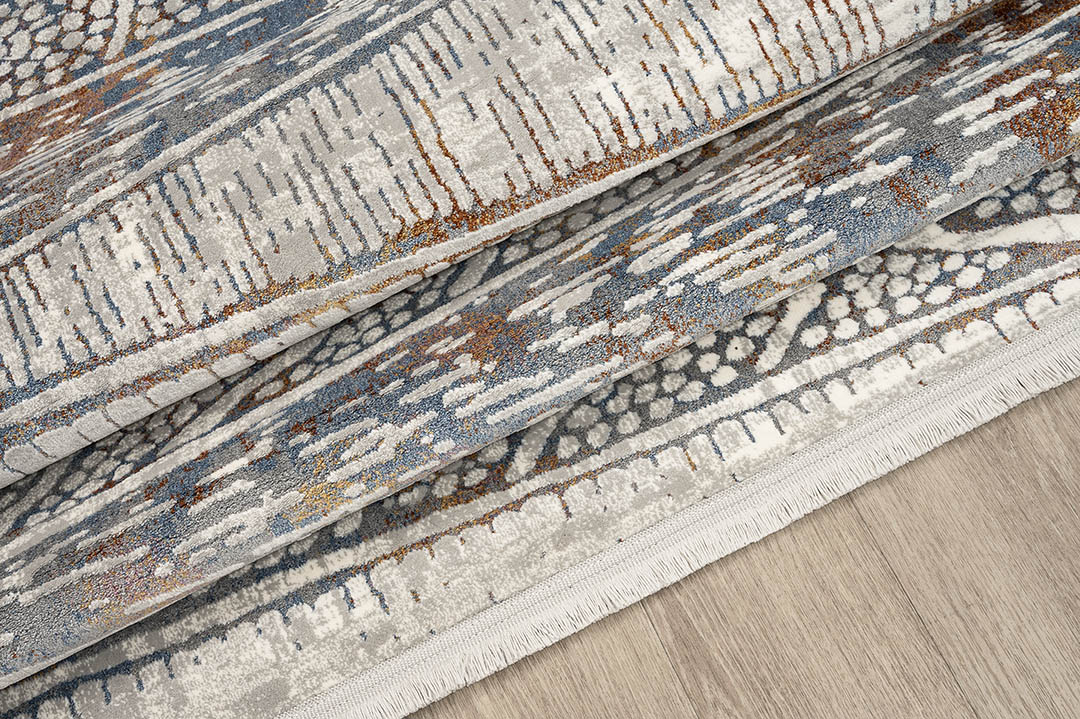 Η νέα σειρά Valencia έχει ως βάση το διαχρονικό γκρι-ασημί και το συνδυάζει με υπέροχες ανάγλυφες πινελιές σε αποχρώσεις του χαλκού, του γαλάζιου, του κίτρινου και του ροζ, προσδίδοντας έναν ιδιαίτερα μοντέρνο χαρακτήρα στον χώρο σας. Στις διαστάσεις χαλιού διατίθεται με γκρι κρόσσια.